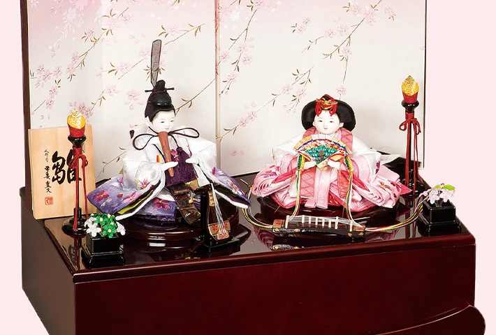 人形の衣装や仕立、帯地、正絹、刺繍などバリエーションも豊富で、二人を飾るのみとなるため、段飾りほど手間がかかりません。